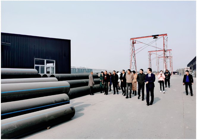 蘭塔管道董事長王佳妮、營銷總監(jiān)鄭小軍、生產(chǎn)總監(jiān)雷龍虎及公司核心領(lǐng)導王小莉,謝侍棋,郝巍全程陪同考察。