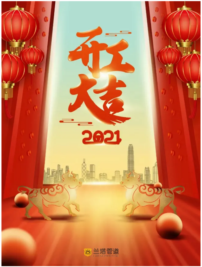 雖然過去的一年充滿困難與挑戰(zhàn),但是蘭德人百折不撓、迎難而上的精神,將每一次的艱難險(xiǎn)阻都化為前進(jìn)成長的動力,并創(chuàng)造出一個(gè)個(gè)奇跡。這就是優(yōu)秀的你們,更是優(yōu)秀的團(tuán)隊(duì),2021,相信蘭德家人會目標(biāo)更遠(yuǎn)大,目標(biāo)更堅(jiān)定,全力以赴,一步一腳印創(chuàng)造出更多輝煌成績。同樣,在此祝愿所有客戶朋友、供應(yīng)商伙伴們在新的2021年,事業(yè)一帆風(fēng)順步步升,萬事如意展鴻圖,感謝您對蘭塔管道長期以來的大力關(guān)愛和鼎力支持,感恩一路有您!