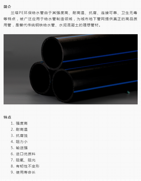 蘭塔管道、產(chǎn)品中心、PE環(huán)保給水管系列